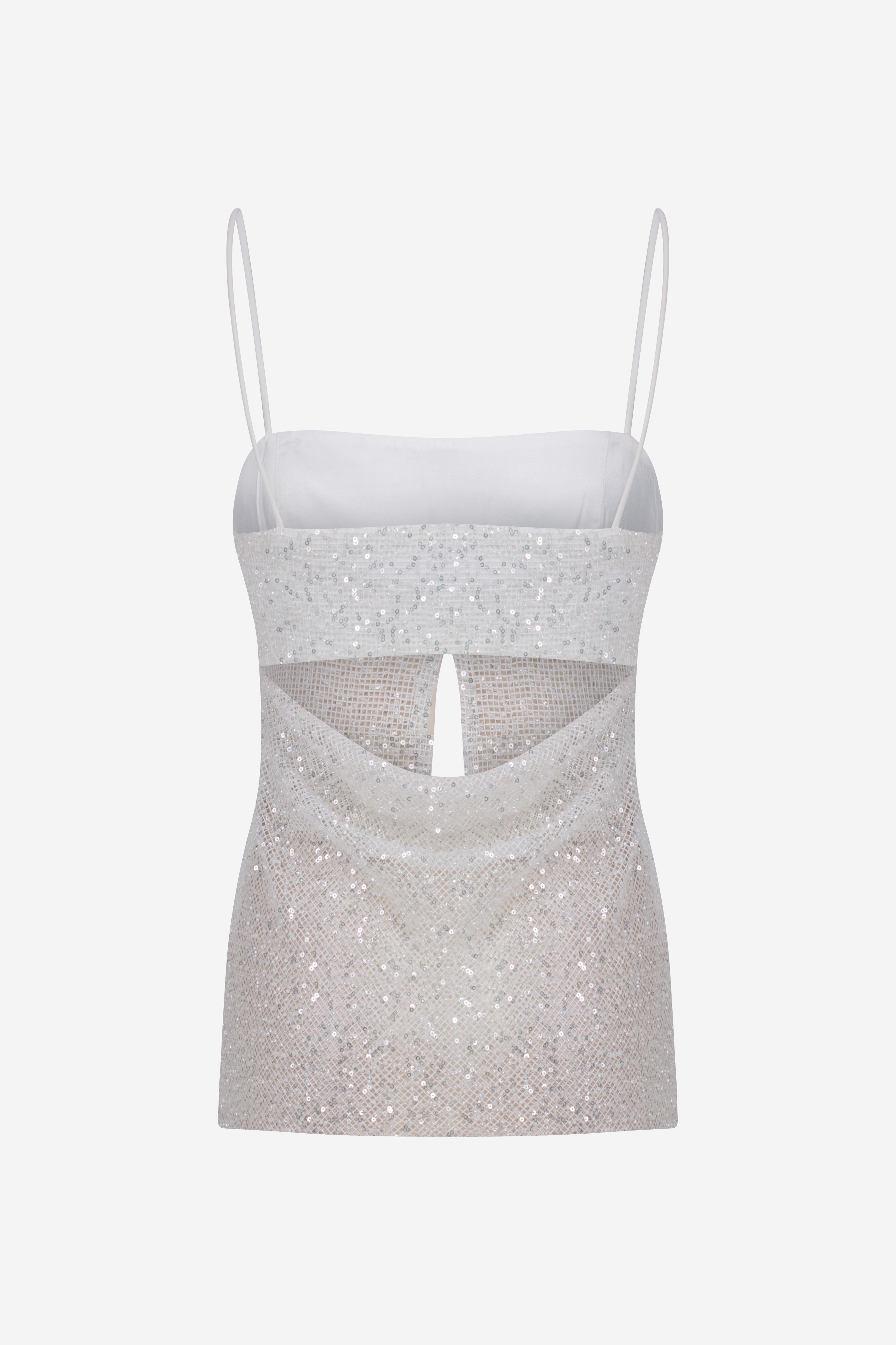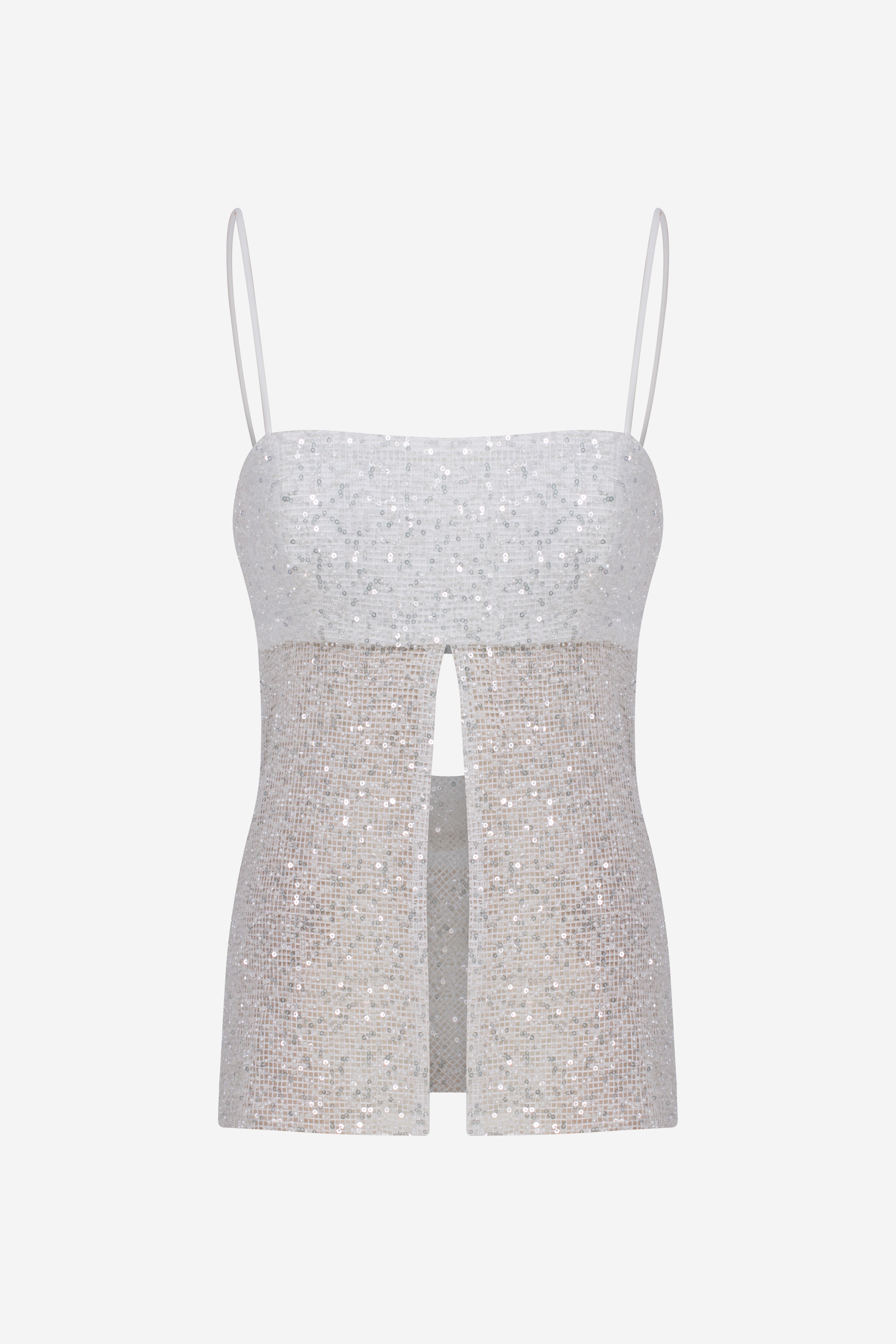 Asita - Sequin Top with Front Slit and Cowl Back in White
