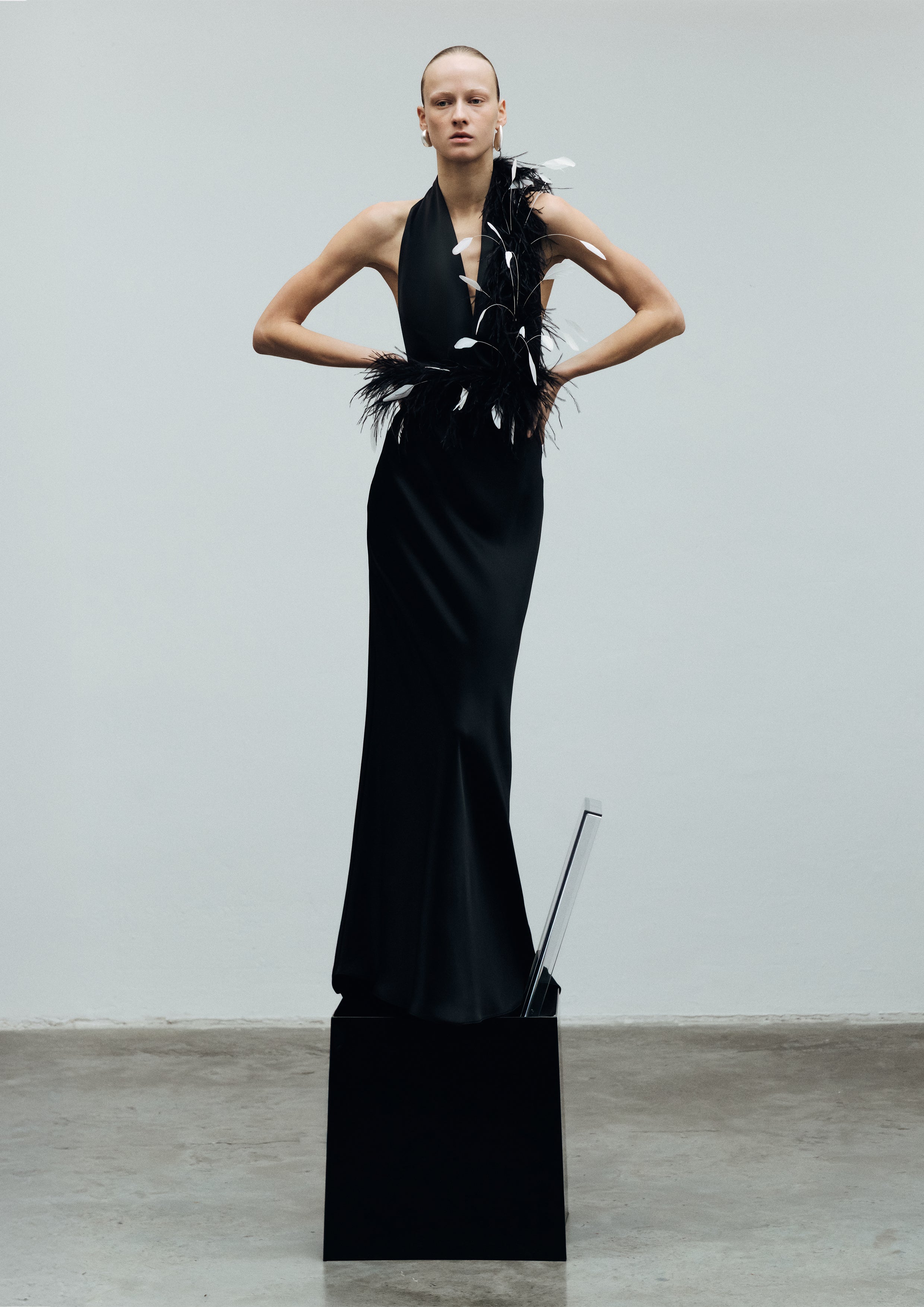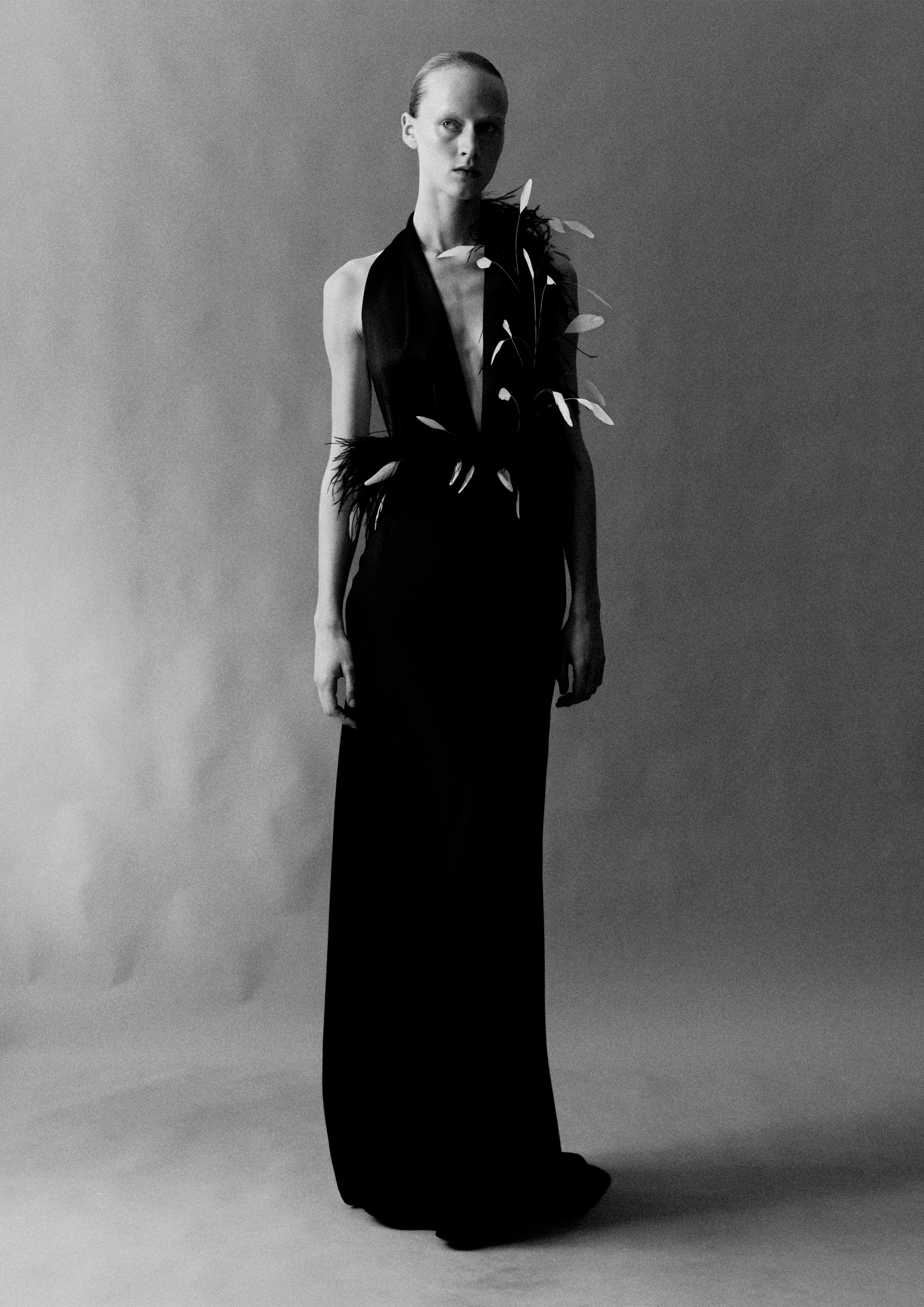Carey - V-Neck Feathered Maxi Dress