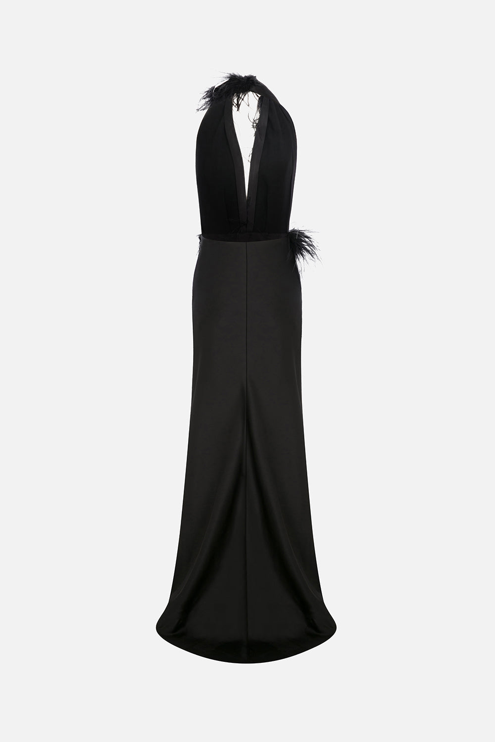 - V-Neck Feathered Maxi Dress