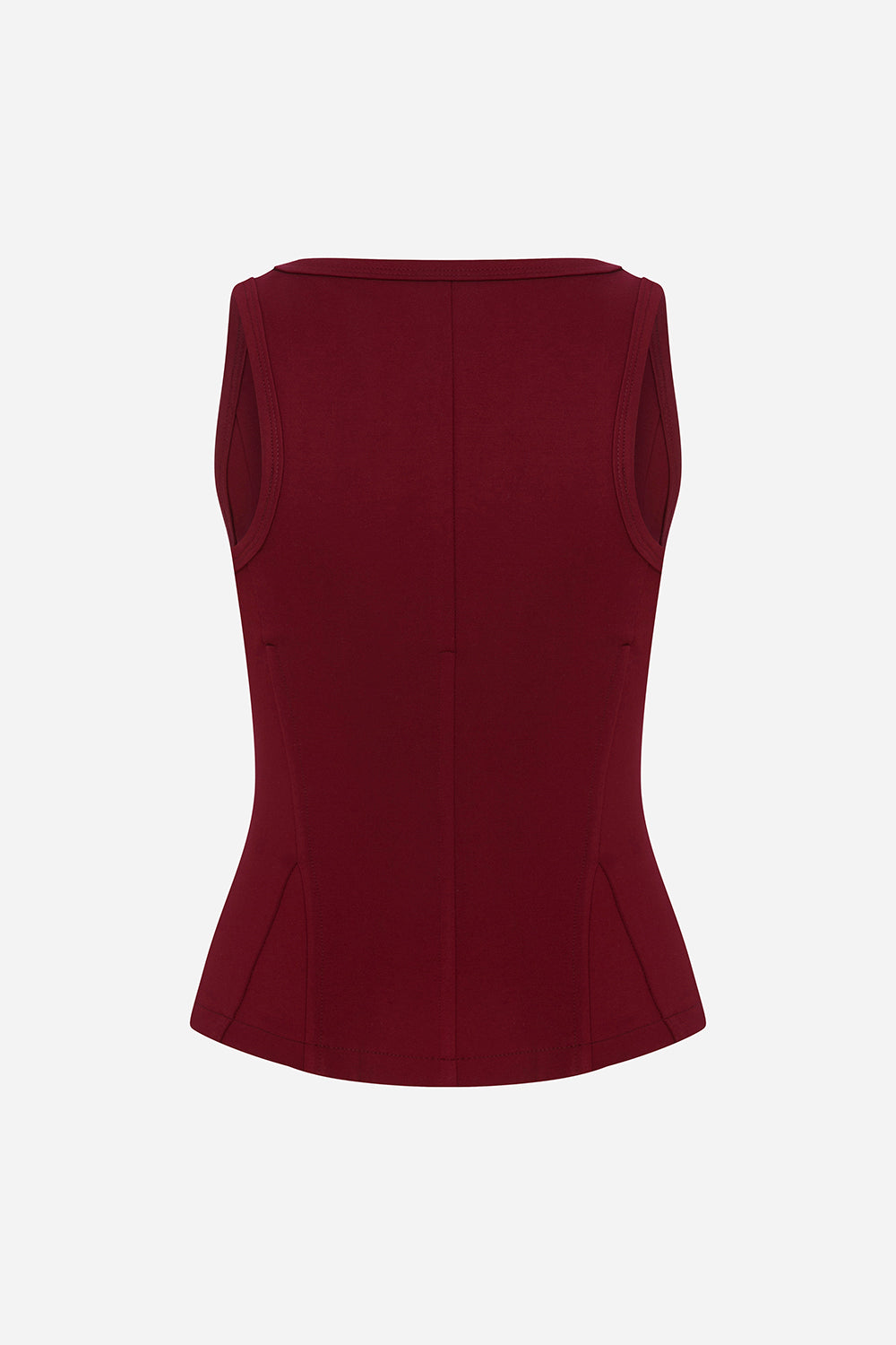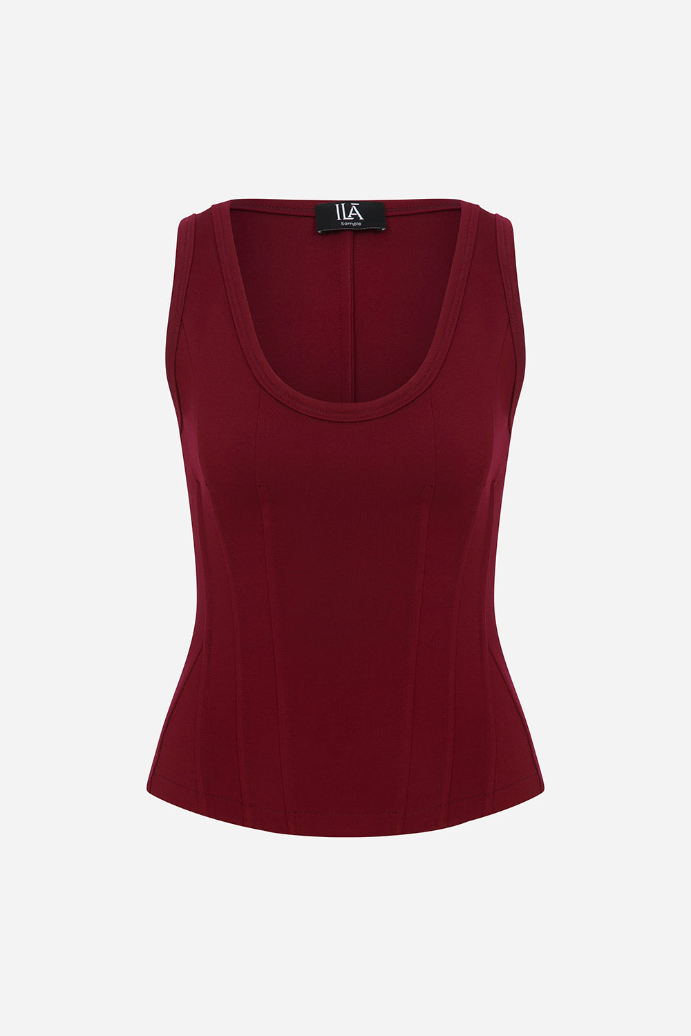 Lilou - U Neck Corset Detailed Tank Top in Burgundy