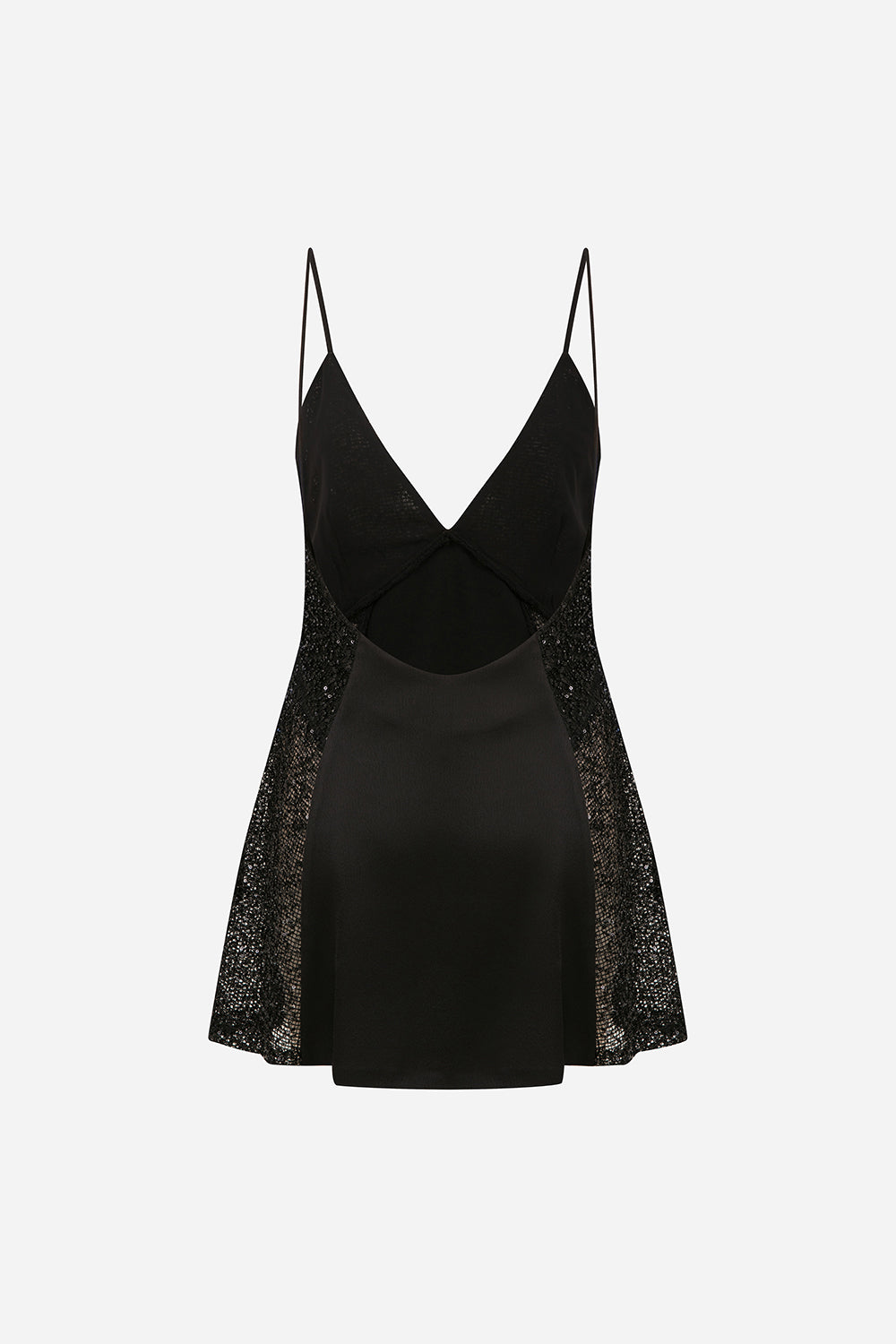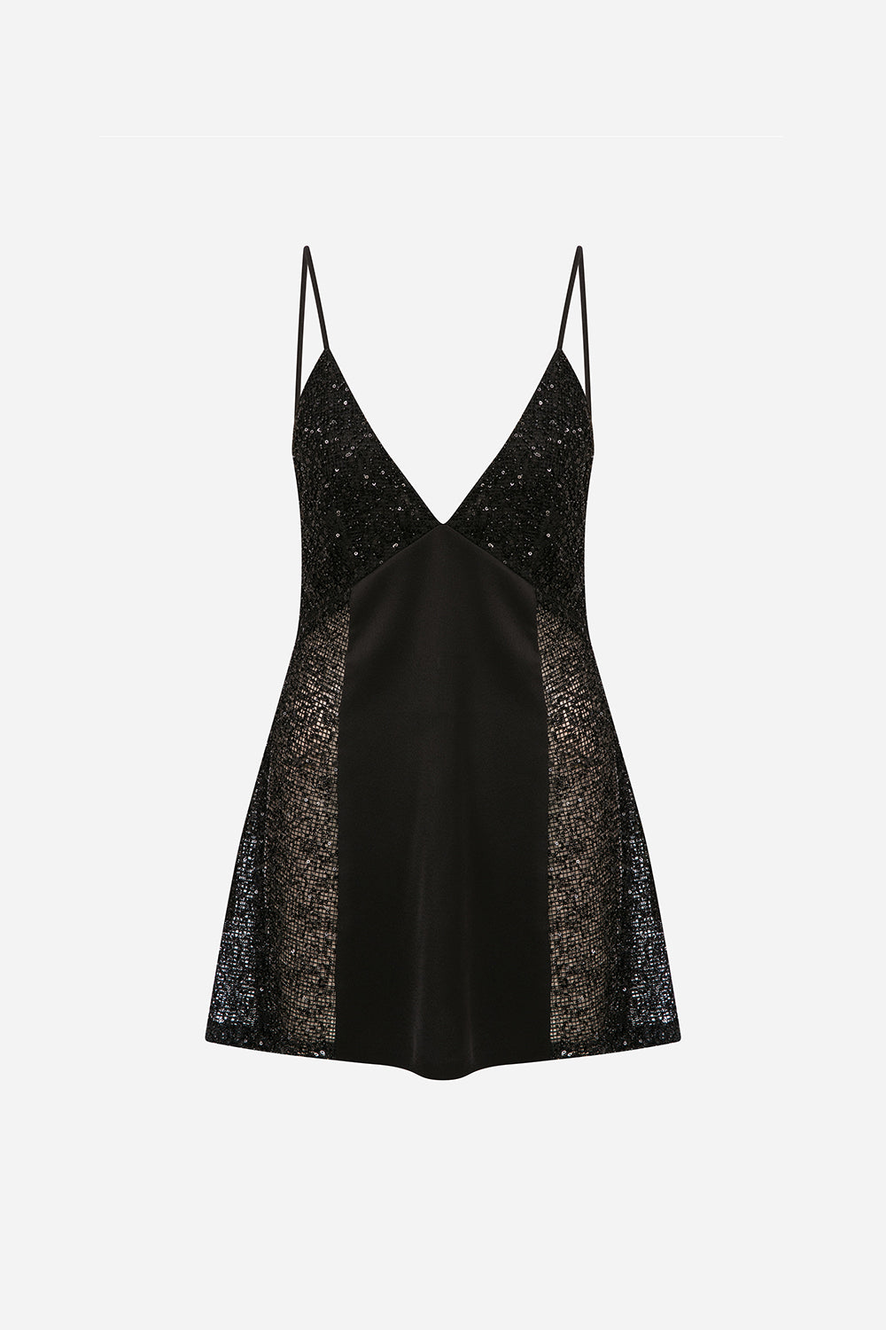 - V Yaka Payet Detaylı Saten Mini Elbise