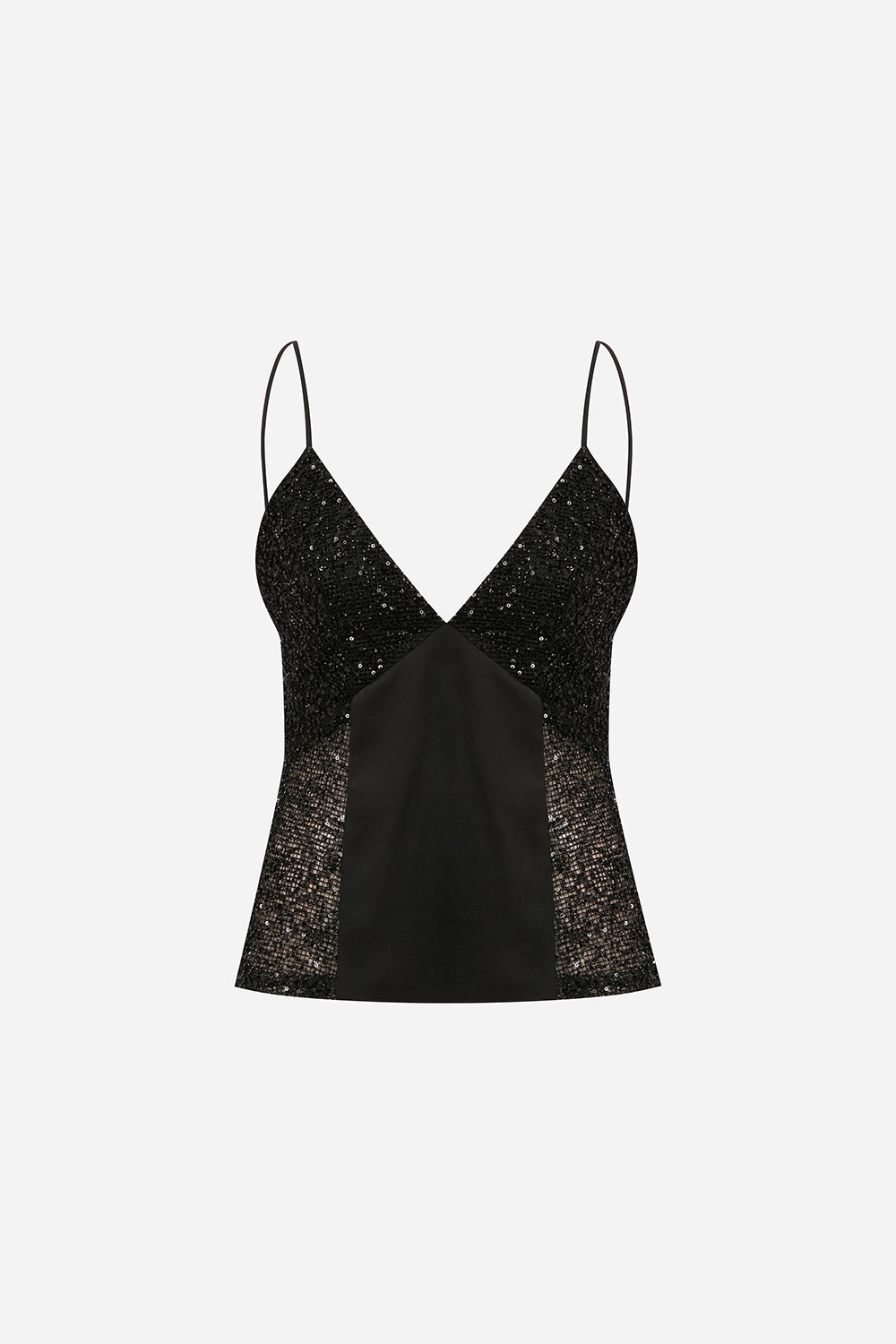 Asita - Ön Yırtmaçlı ve Arkası Degaje Payetli Bluz - Siyah