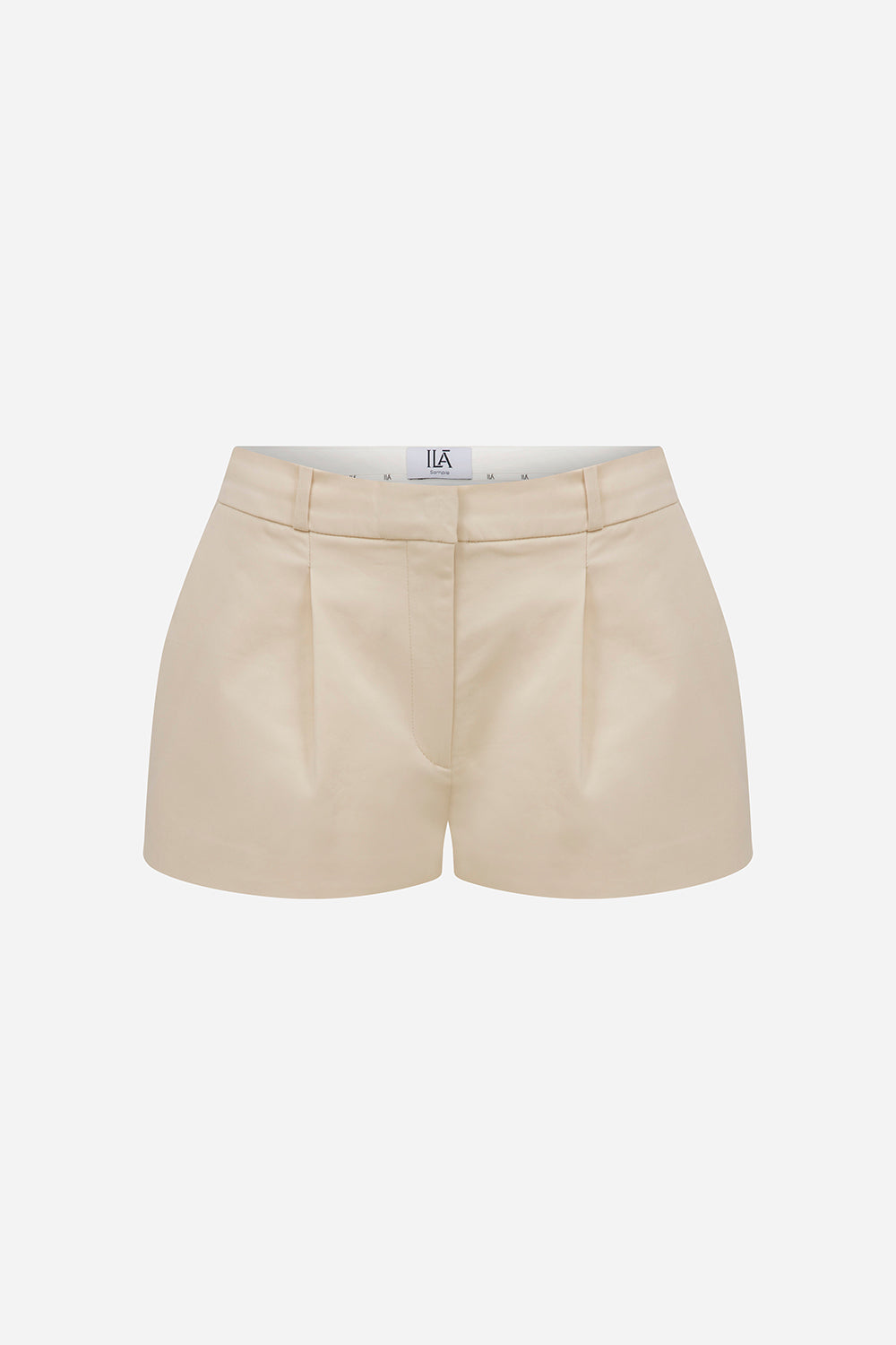 Lou-Tailored Pleated Mini Shorts in Seashell Ecru