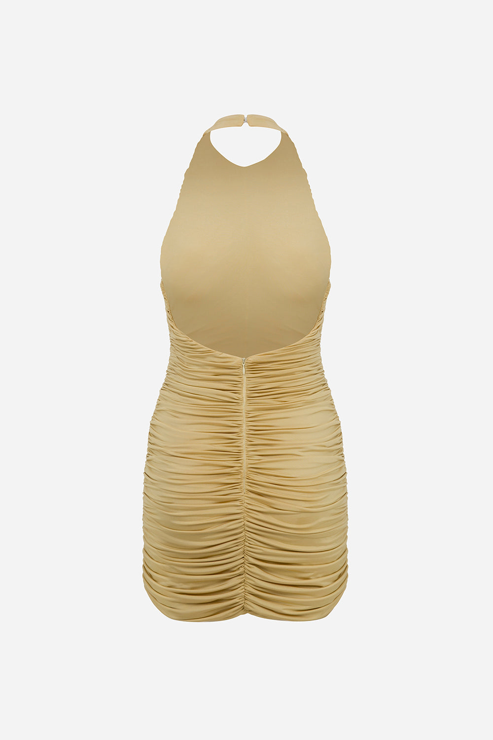 - Drapeli Sırt Dekolteli Jarse Mini Elbise