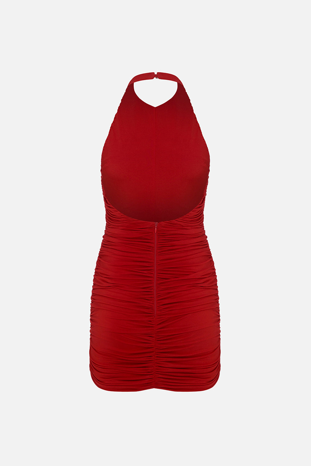 Amber-Draped Open-Back Jersey Mini Dress in Red