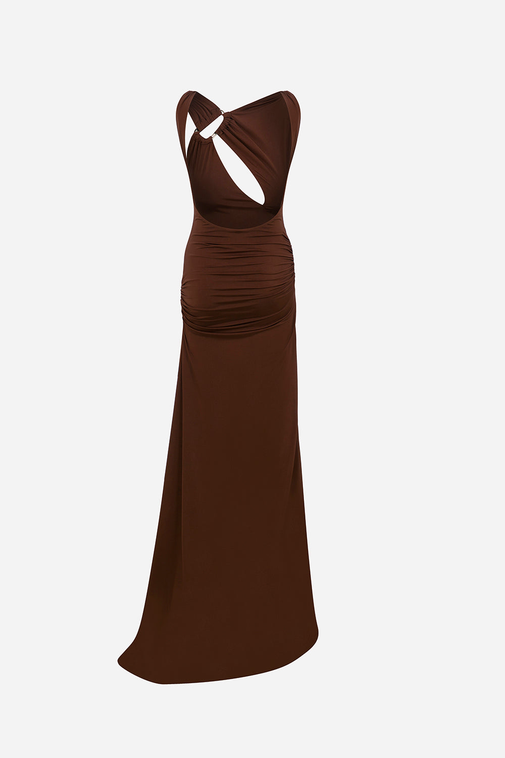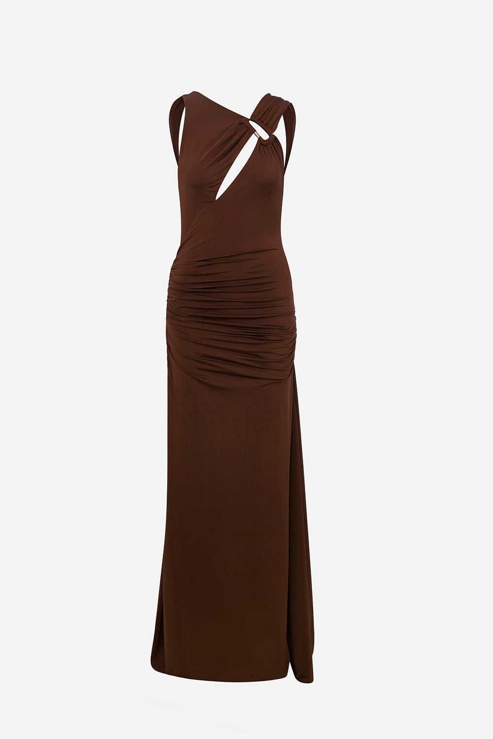 Amore-Ruched Jersey Maxi Dress With Slit And Accessory Detail