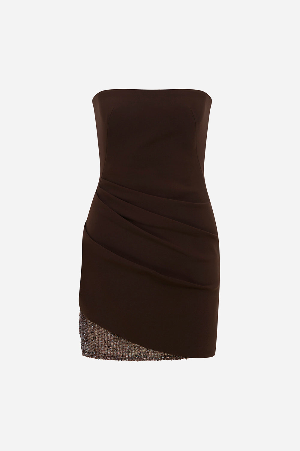 Alissa-Strapless Pleated Mini Dress With Sequin Hem Detail in Brown